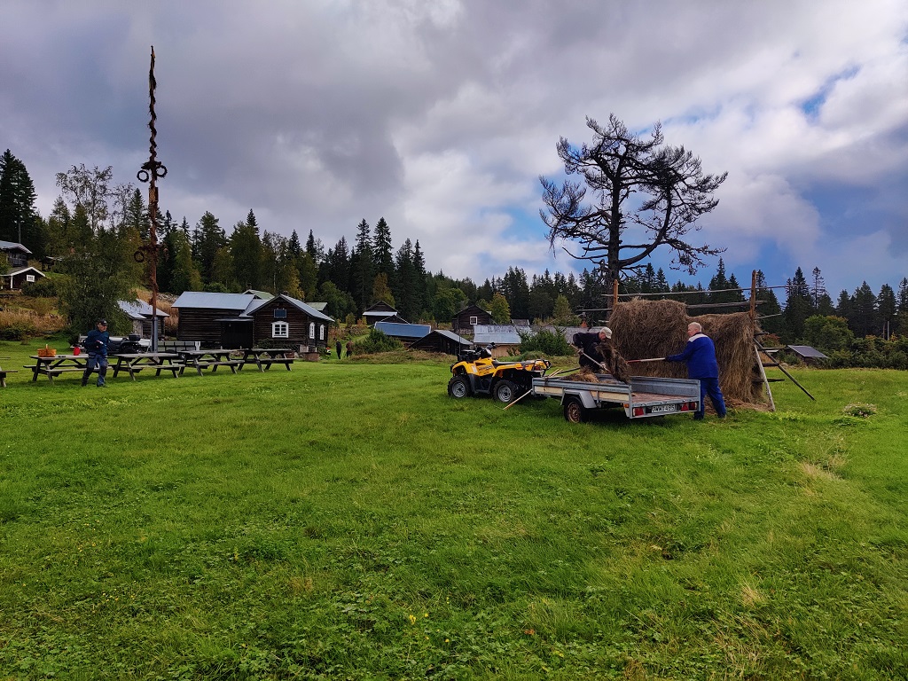 Blev en bra lördag, vi började med att samlas vid ladan, för att ta närvaro och delegera ut arbetsuppgifter, ganska bra uppslutning, inte i klass med sommarens slåtterdag, men ändå en god bit på väg. Så nästa års arbetsdag kommer troligen att bli ännu bättre.