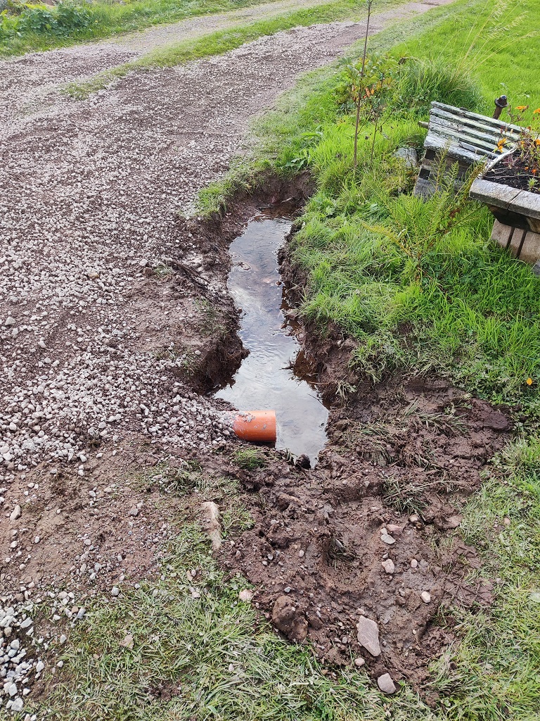 - Gräva ner ett nytt rör under vägen för källan vid 22:1 och grusa på den delen av vägen (så att vi slipper vattenpölar där)