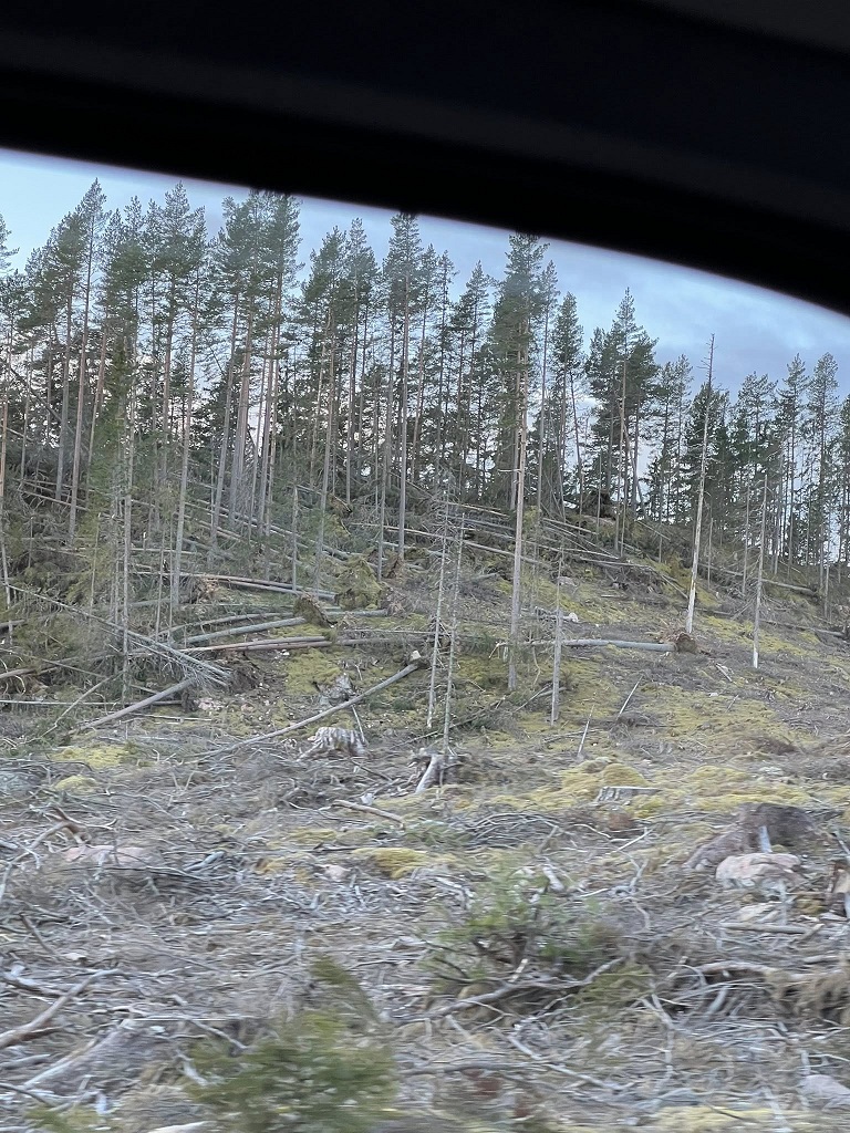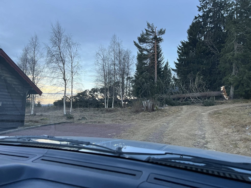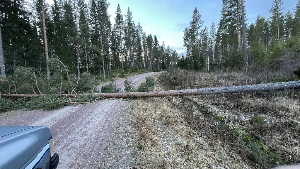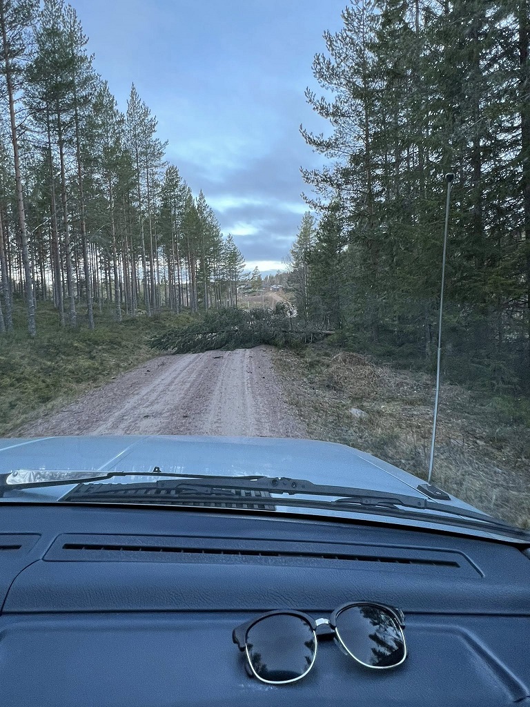Några träd har lagt sig sista biten upp från Holmtjärn, men det har Roger och Anna-Lena löst så att det är körbart upp.